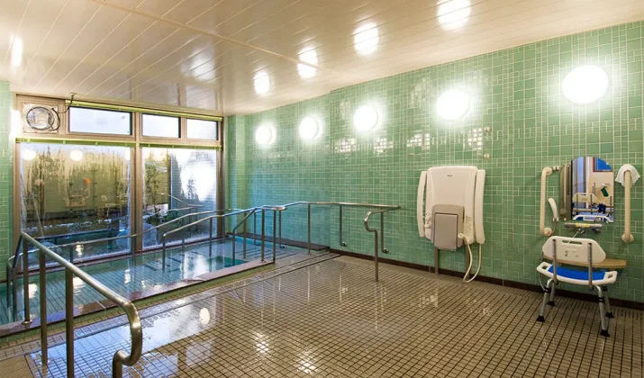 【一般浴】車椅子のまま入浴できるスロープ付き。温かいお風呂でリラックスタイムをお楽しみください。