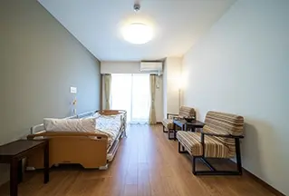 | 居室設備 | トイレ、化粧洗面台、緊急通報装置+ペンダント、オール電化+IHシステムキッチン、インターネットが利用できます(別途プロバイダ契約が必要)、介護ベッド、エアコン、カーテン、照明 |