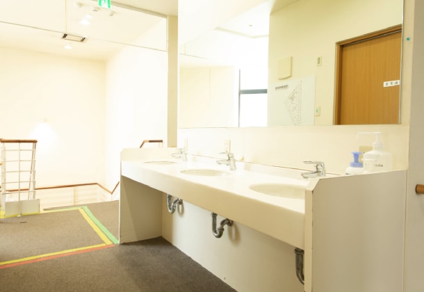 【洗面】館内は常に清潔に保たれ、感染防止対策も徹底しています。
